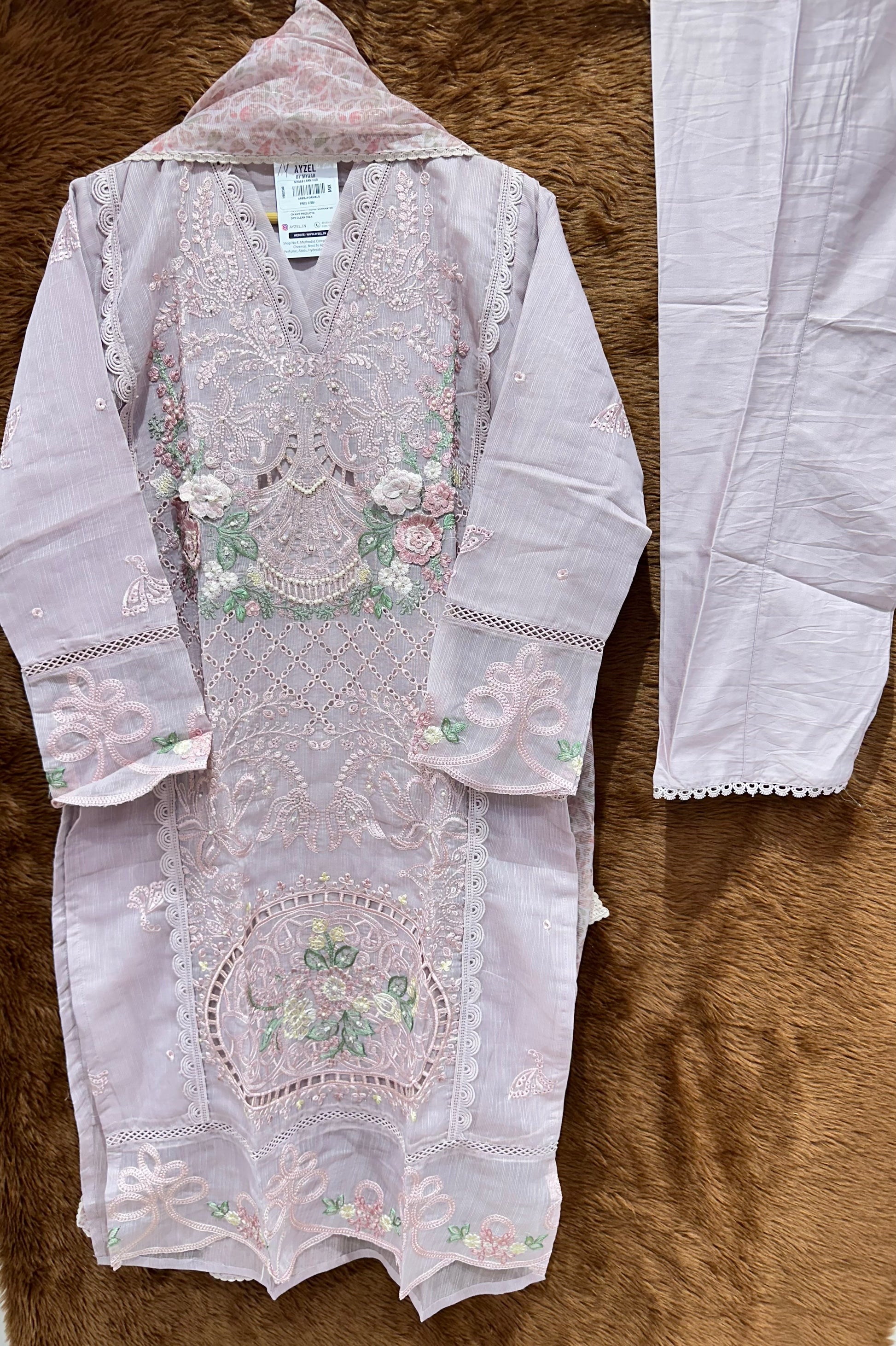 HEAVILY EMBROIDERED COTTON NET KAMEEZ