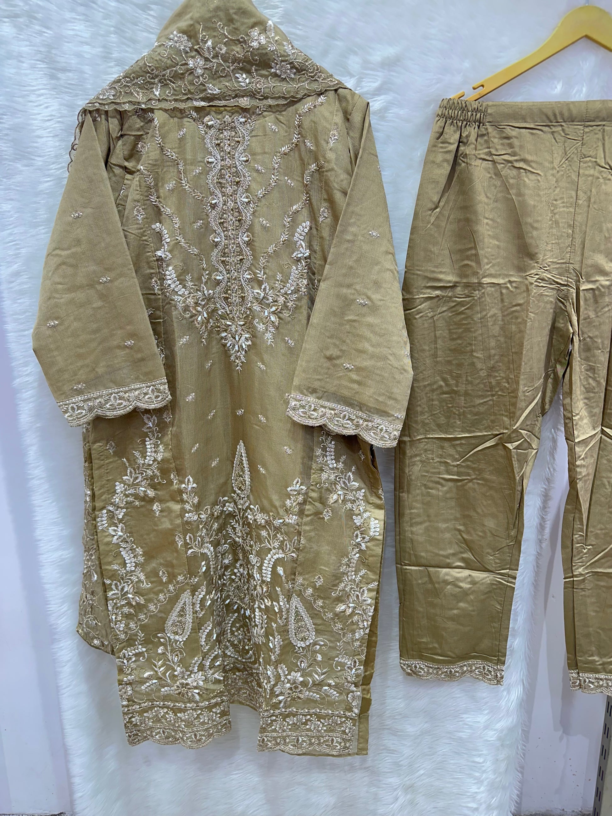 HEAVILY EMBROIDERED COTTON NET KAMEEZ