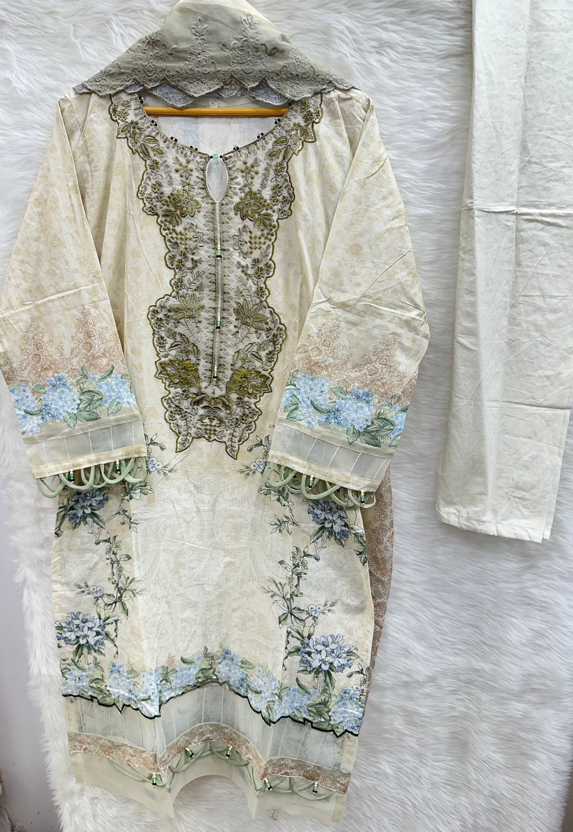 HEAVILY EMBROIDERED LAWN KAMEEZ WITH LACEWORK