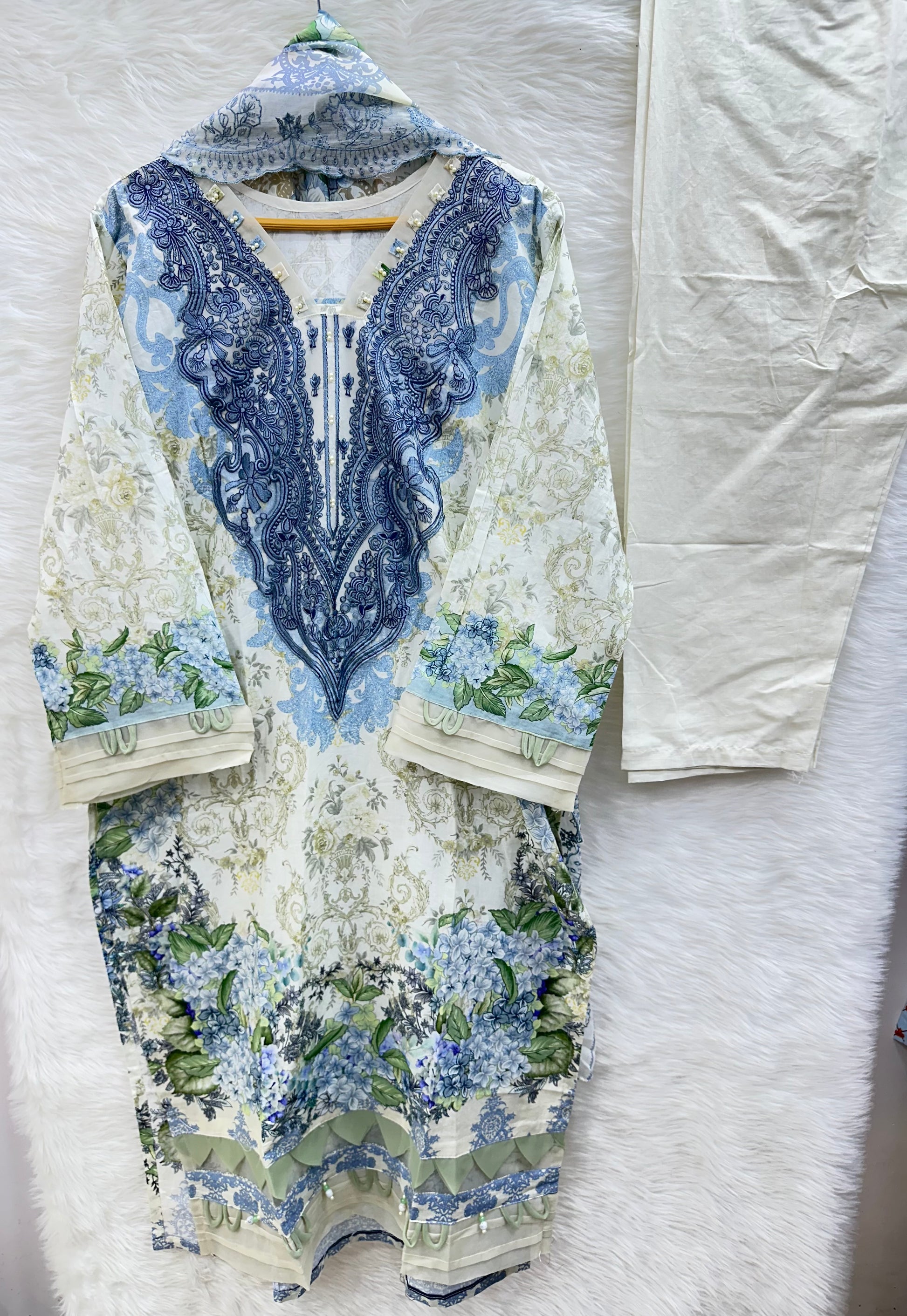 HEAVILY EMBROIDERED LAWN KAMEEZ WITH LACEWORK