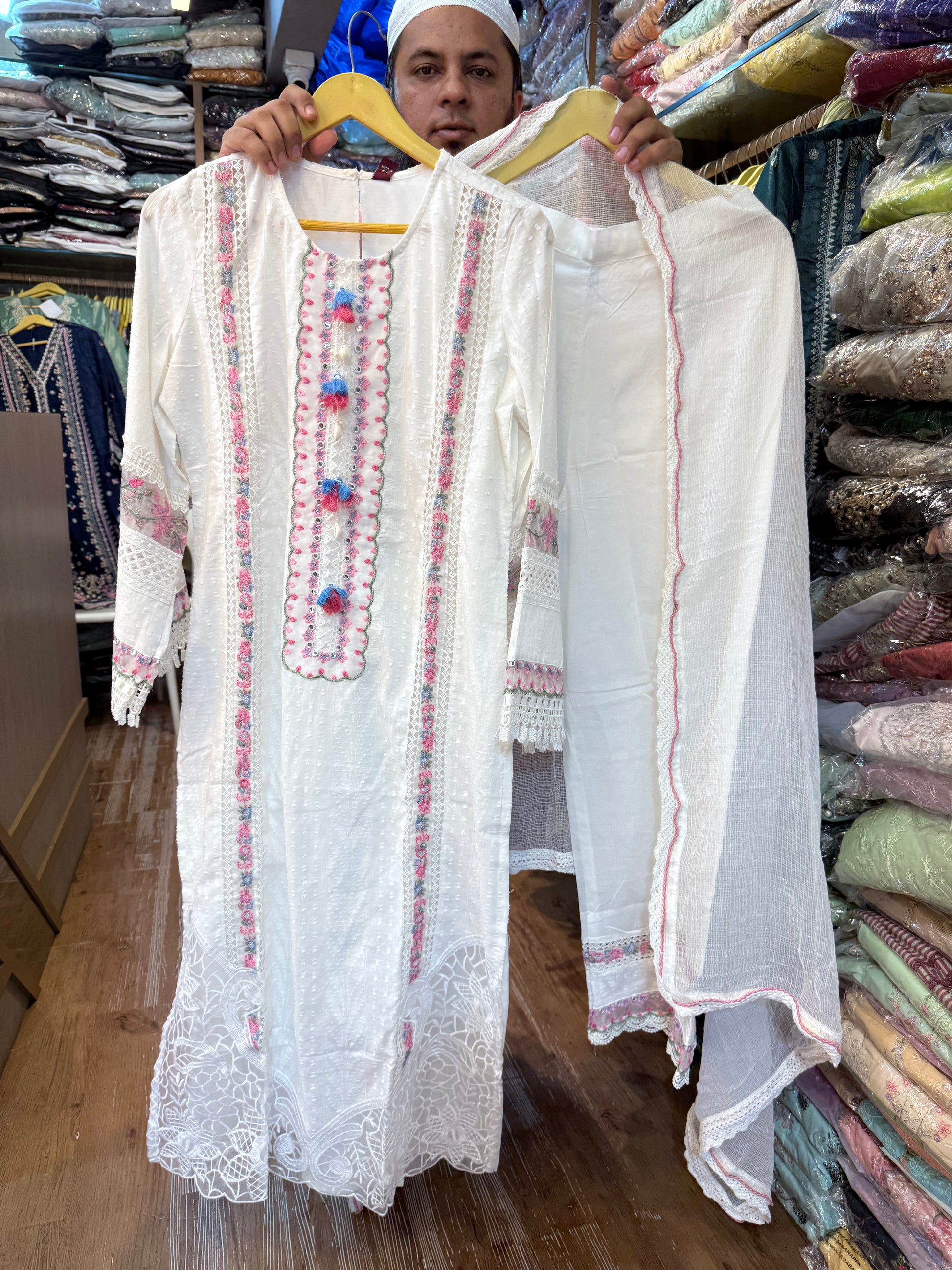 EMBROIDERED COTTON NET DUPATTA WITH FOUR SIDE BORDER